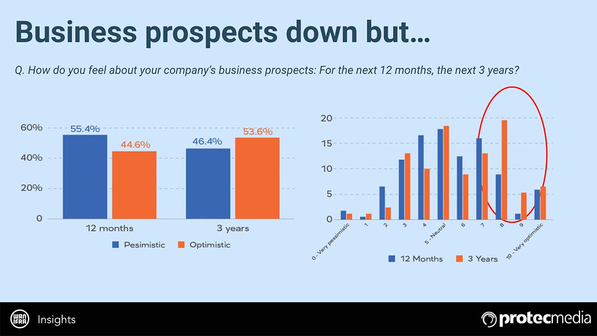Aunque el optimismo ha disminuido en general, los datos muestran que existe un grupo de editores que se mantienen bastante optimista, especialmente cuando se les pregunta sobre los próximos tres años. Para esta minoría optimista, los desafíos actuales no han socavado su fe en el futuro a largo plazo de sus negocios.