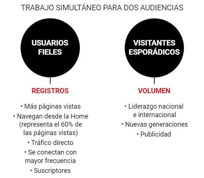 La fidelización con los suscriptores, esa audiencia que se conecta con más frecuencia y que representa el 60% de las páginas visitadas, es clave. Por eso mismo, el diario se propone producir nuevos contenidos especializados y segmentados, como los videos y newsletters.