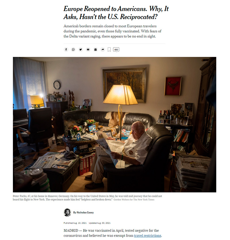Los efusivos comentarios llevaron al periodista Nicholas Casey a escribir hace unos días (desde Madrid) una historia de seguimiento subrayando cómo la prohibición, para algunas familias europeas, había agravado uno de los dolores más profundos de la pandemia: la separación en sí.