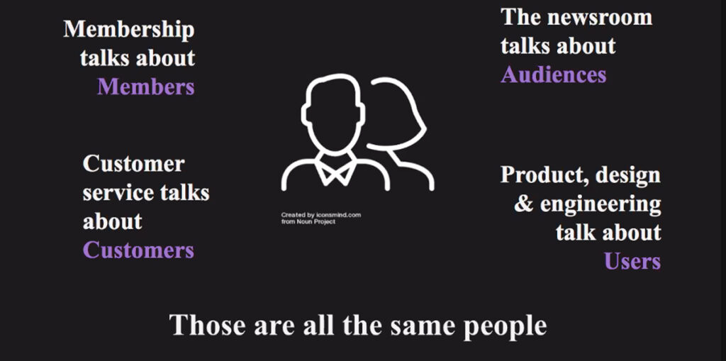 - Asegurarse de que los directores de los medios están de acuerdo en lo que quieren alcanzar. Si se pone el foco en aumentar audiencia, si en reducir el churn, si en incrementar las visitas por mes, etc. Esto nos indica cuál es la dirección. El punto de partida es alinear las métricas principales al más alto nivel de la organización.