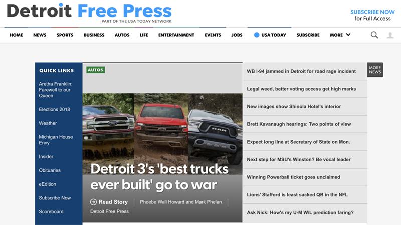 Algo así sucedía también al Detroit Free Press, conocido localmente como Freep, el periódico más leído de la ciudad de los automóviles (si accede al enlace desde España u otro país europeo sólo verá una edición reducida debido al GDPR, salvo que use VPN con IP no europea).