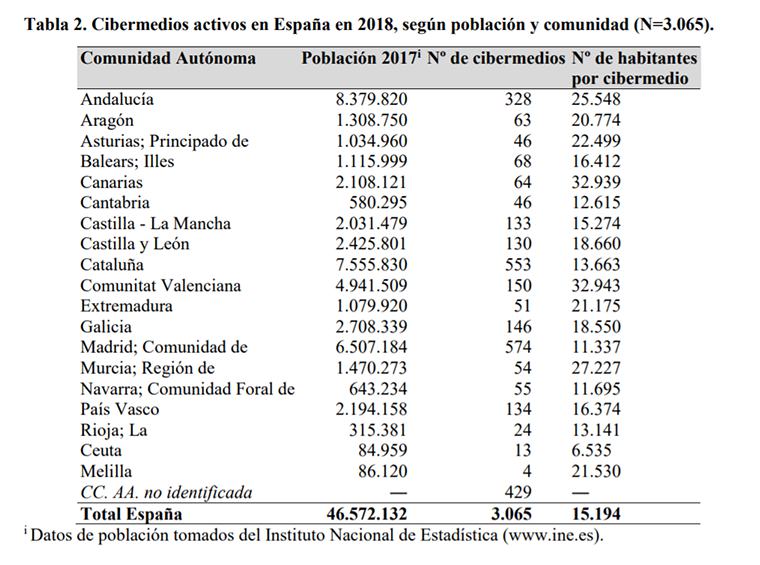 Según el estudio, se han localizado 3.431 medios digitales en marzo de 2018, de los cuales 3.065 estaban activos (es decir, se habían actualizado al menos una vez en los últimos tres meses). Esta cifra de medios digitales activos supone, indica el estudio, un espectacular crecimiento en la última década, pues prácticamente triplica los 1.274 cibermedios censados en la pasada década, según constató entonces un estudio de Ramón Salaverría en 2005.