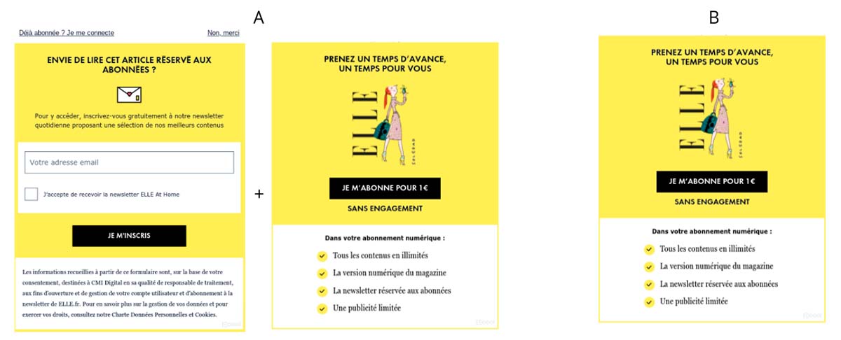 La revista de moda y belleza Elle (edición Francia) ha estado probando una nueva estrategia digital premium con una ruta de conversión de dos pasos que consiste en un muro de registro seguido de un muro de pago duro, para ver si convierte más que un muro de pago directo. Poool, la empresa de soluciones de soluciones de registro y suscripción, ha realizado en su última newsletter un análisis del experimento llevado a cabo por Elle.