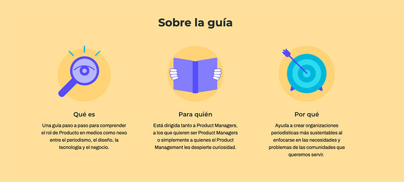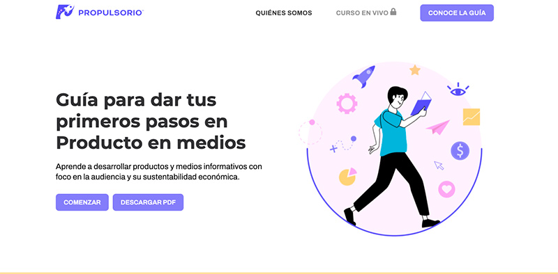 Los periodistas argentinos Felicitas Carrique, directora de Innovación de SembraMedia, y Maximiliano De Rito, product owner en Fiera, responden todas esas preguntas -y muchos otros interrogantes- en Propulsorio *. Se trata de una guía interactiva, práctica y gratuita para acercar la mentalidad de Producto a las redacciones de América Latina y ayudar a crear experiencias informativas atractivas para sus audiencias.