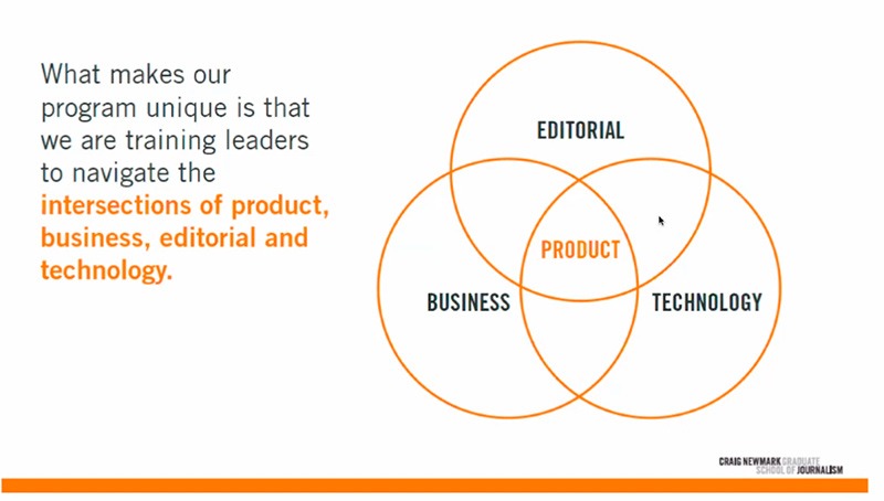 Zielina ha definido el producto como una función organizativa en esa intersección entre la parte de tecnología, la editorial y la de negocio, que garantiza que una organización de medios está abordando las necesidades de los usuarios y proporciona una fantástica experiencia de usuario y permite hacer avanzar la estrategia general”.