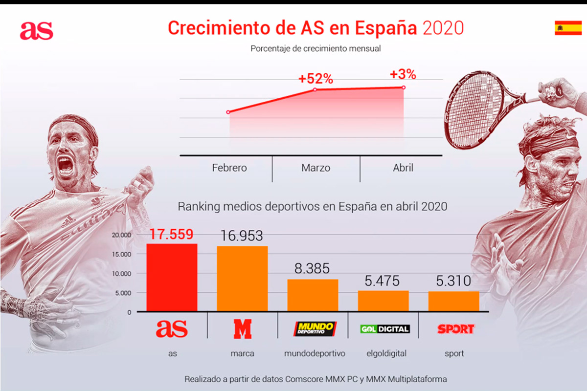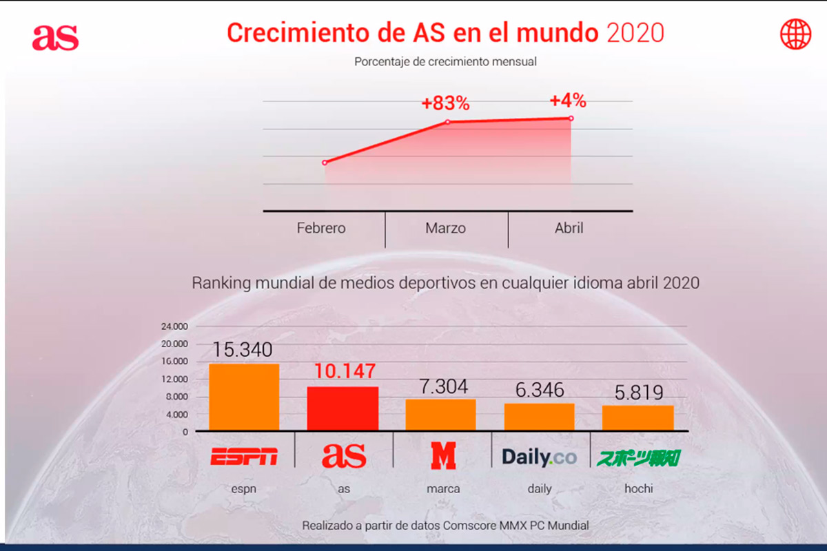 Jiménez compartió los datos de audiencia durante la pandemia, que han colocado a AS como el medio de mayor crecimiento internacional, sólo por detrás de ESPN, y el primero en España, desbancando a Marca, que había liderado el ranking hasta ahora.