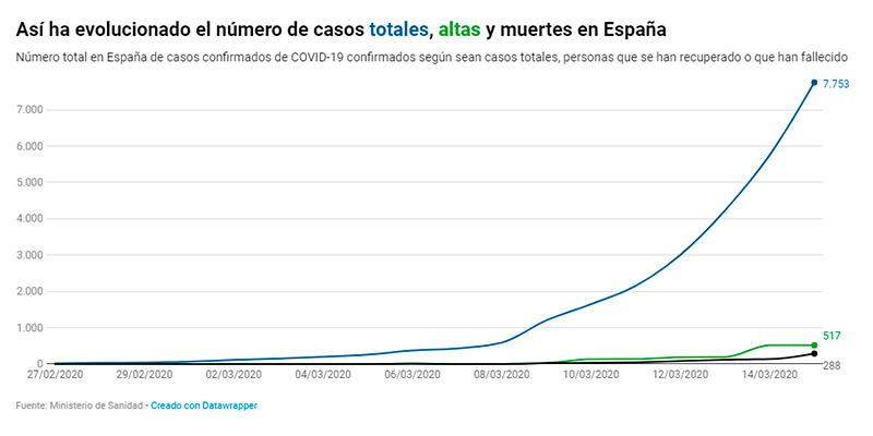 Datawrapper. Para realizar gráficos en poco tiempo sobre el coronavirus, datawrapper cumple perfectamente la función. Tiene una versión gratuita con muchas funcionalidades que puede ser más que suficiente. La está utilizando, por ejemplo, eldiario.es