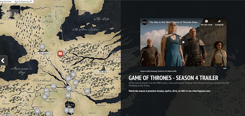 StorymapLa tercera herramienta de la Knight Foundation que nos puede ser útil a la hora de representar datos es Storymap. Con Storymap es posible agregar una diapositiva para cada espacio de la historia que queremos contar. Establecer la ubicación es tan fácil como buscar en el mapa el nombre, la dirección o la latitud y longitud. Se puede cambiar el estilo visual del mapa con algunos ajustes preestablecidos, o se puede usar Mapbox para crear un estilo personalizado. Las imágenes pueden ser desde  fotografías grandes hasta obras de arte, mapas históricos y otros archivos de imágenes.