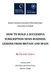 El actual director de Comunicación de Reuters Institute, el español Eduardo Suárez, hizo pública ayer la investigación que ha llevado a cabo desde que entró en enero del año pasado en Reuters como periodista para estudiar algunos de los principales desafíos del periodismo, entre ellos el de los sistemas de suscripción, en el que se centra el estudio.