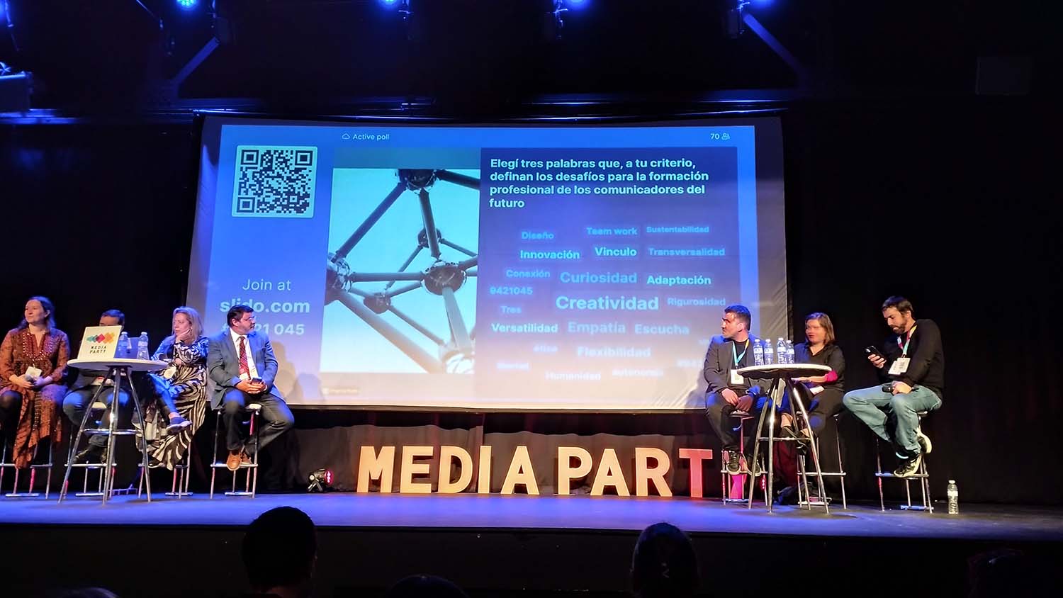 Fiel a una propuesta innovadora e intentando evitar un panel expositivo, de académicos que explican “cómo son las cosas”, llegó el turno de participar: todos los asistentes, celular en mano, aportamos un concepto, una idea, una competencia que se requerirá del comunicador del futuro. Segundos después el mapa semántico quedó armado: creatividad, flexibilidad, empatía, curiosidad, versatilidad, ética, innovación y más.