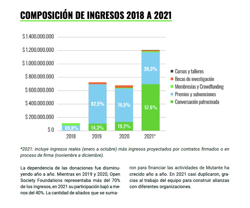 Como el sitio no es el lugar donde concentran su estrategia editorial y de monetización, desde Mutante cuentan con distintas vías de ingresos: cursos y talleres; becas de investigación; programa de membresías (Mutante+, lanzado en septiembre de 2020): premios y subvenciones; y conversaciones patrocinadas.