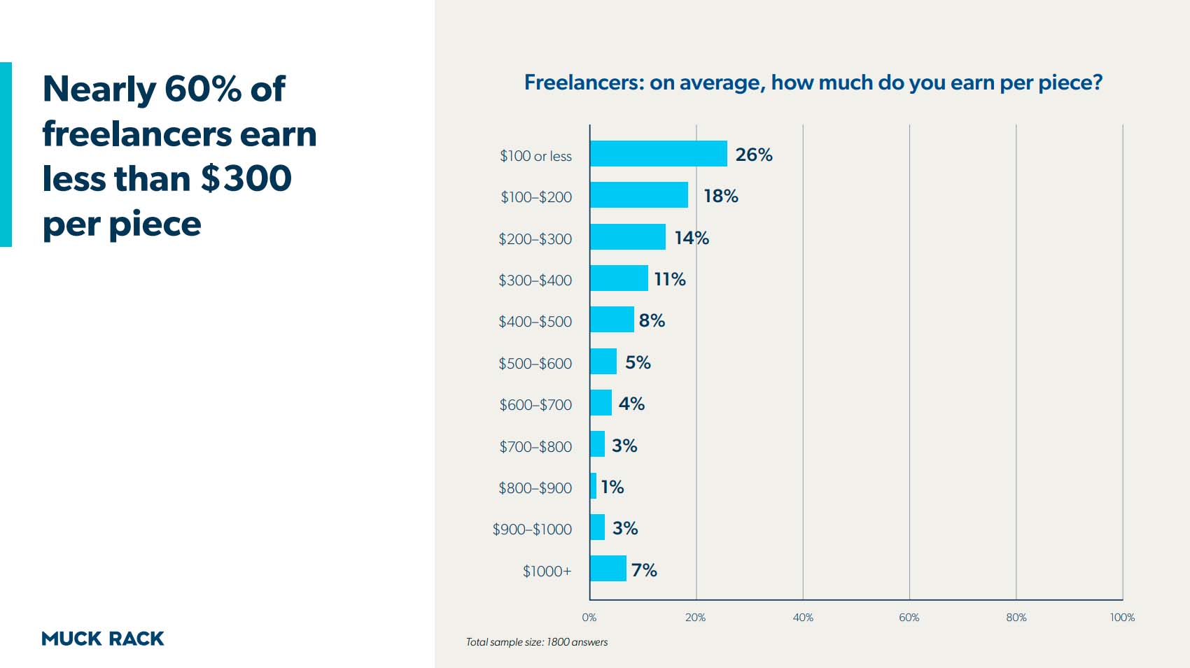 - Un 26% cobra 100 dólares por pieza o menos, mientras que un 18% cobra entre 100 y 200 dólares, seguido por los que cobran entre 200 y 300 dólares (14%). Hay un 7% que cobra más de mil dólares por pieza.