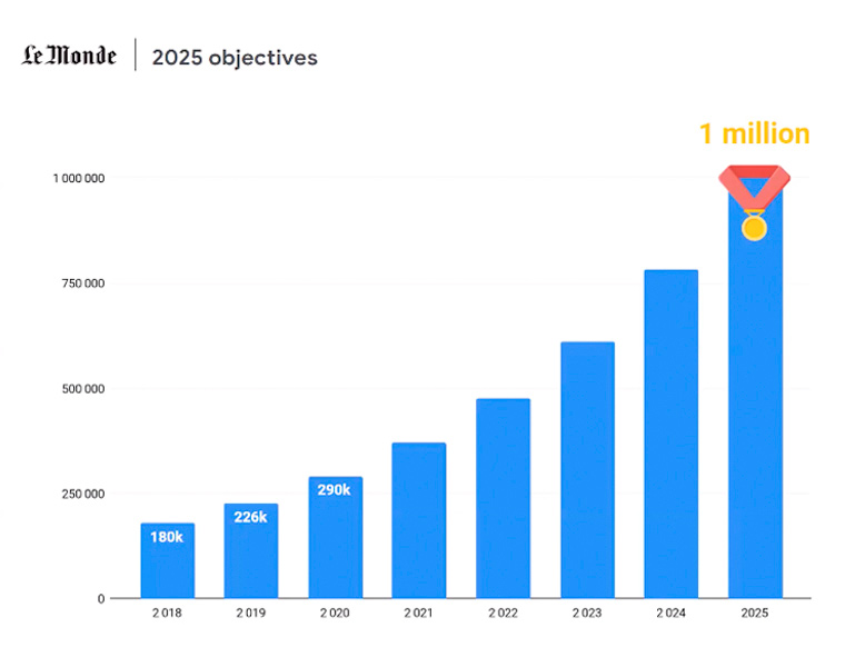 Le Monde anunció a principios de 2020 que iba a poner en marcha un plan específico para volcarse en la captación de suscripciones. Según el plan, en 2020 debían conseguirse  290.000 suscriptores, para acercarse a los 350.000 este año 2021, rozar los 500.000 el año próximo, e ir creciendo hasta los casi 750.000 en 2024 y lograr el objetivo del millón en 2025.