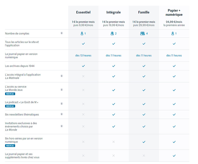Estas nuevas ofertas «son un verdadero éxito entre nuestros lectores, ya que representan casi el 50% de nuestra cartera de suscriptores digitales. Al igual que Netflix, nuestras ofertas incluyen de dos a cuatro cuentas (Integral y Familiar) y  satisfacen una necesidad real de los lectores».