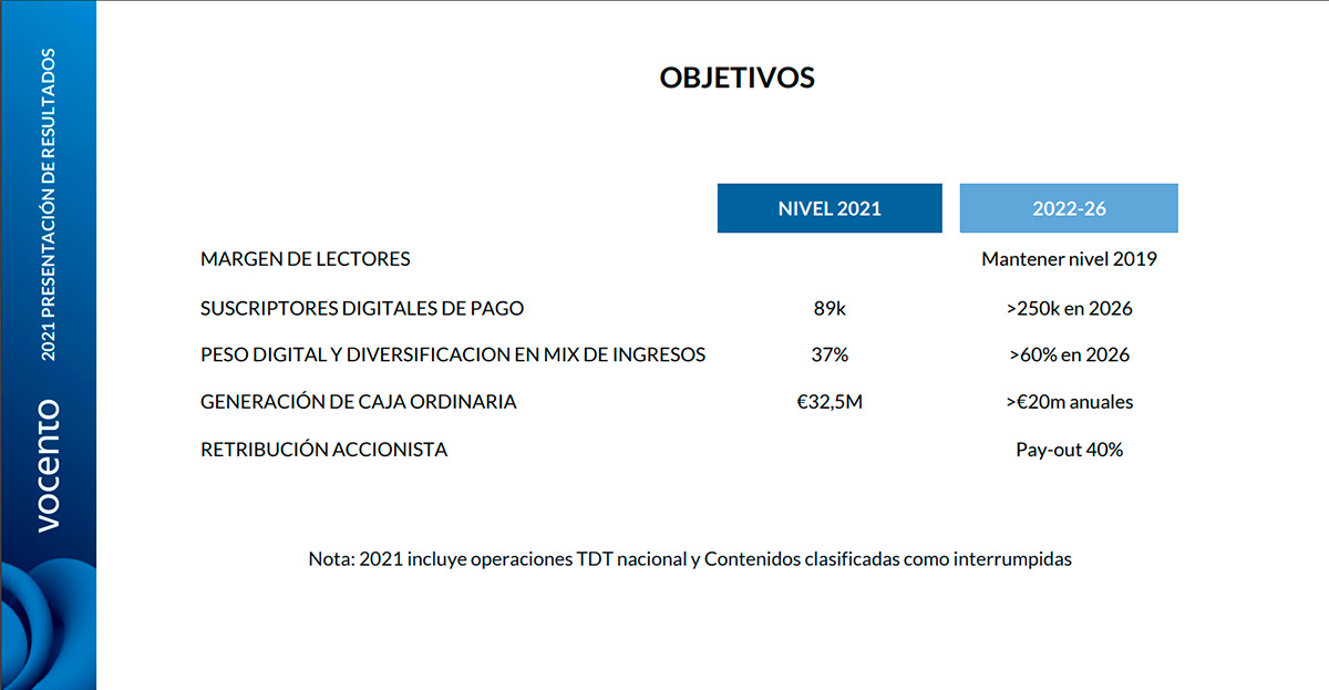 En el área digital, Vocento ha actualizado su objetivo de suscriptores de pago, que es el de tener 250.000 en 2026