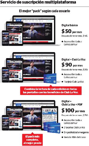 La Voz ofrece de manera gratuita la suscripción digital a todos los lectores que adquieren su producto impreso los siete días de la semana. Y, por 40 pesos adicionales, a los lectores que adquieren el producto papel con una frecuencia semanal inferior a siete días.