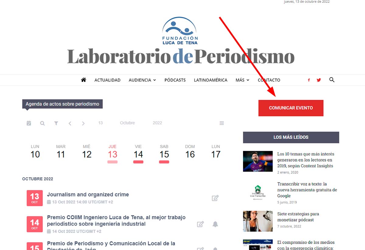 Existe también la posibilidad de dar a conocer actos sobre periodismo que considere que son de interés, a través del botón ubicado en la parte superior derecha de la página.