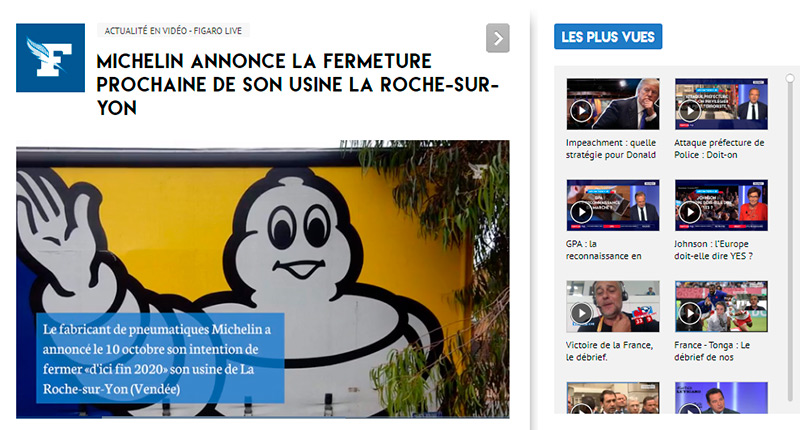 Otra de las apuestas de Le Figaro ha sido el vídeo, que ha pasado a tener un peso específico enorme en la nueva web, y el reproductor, que casi siempre aparece en primeros scrolls de las noticias o en formato flotante en portada, ofreciendo una selección de vídeos, está muy pensado para que la experiencia de usuario sea agradable. No en vano, Le Figaro es uno de los medios legacy que más apuesta por el vídeo, con un equipo dedicado de más de 20 personas, que genera numerosos vídeos propios de calidad al día.