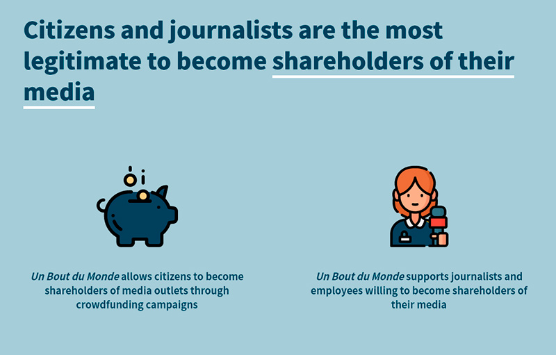El proyecto, que se ha denominado Un Bout Du Monde, creado por la presidenta de la Sociedad de lectores de «Le Monde», Julia Cagé, (profesora de economía, especialista en financiación de medios y autora, entre otros, del libro Salvar los Medios de Comunicación), nace con un objetivo claro: “La reconquista democrática de los medios de comunicación y restaurar la confianza de los ciudadanos en ellos», que es el eje central de las tesis planteadas por Cagé en sus libros. Inicialmente, se centra sólo en el periódico francés, pero con visos de extenderse a otros medios.