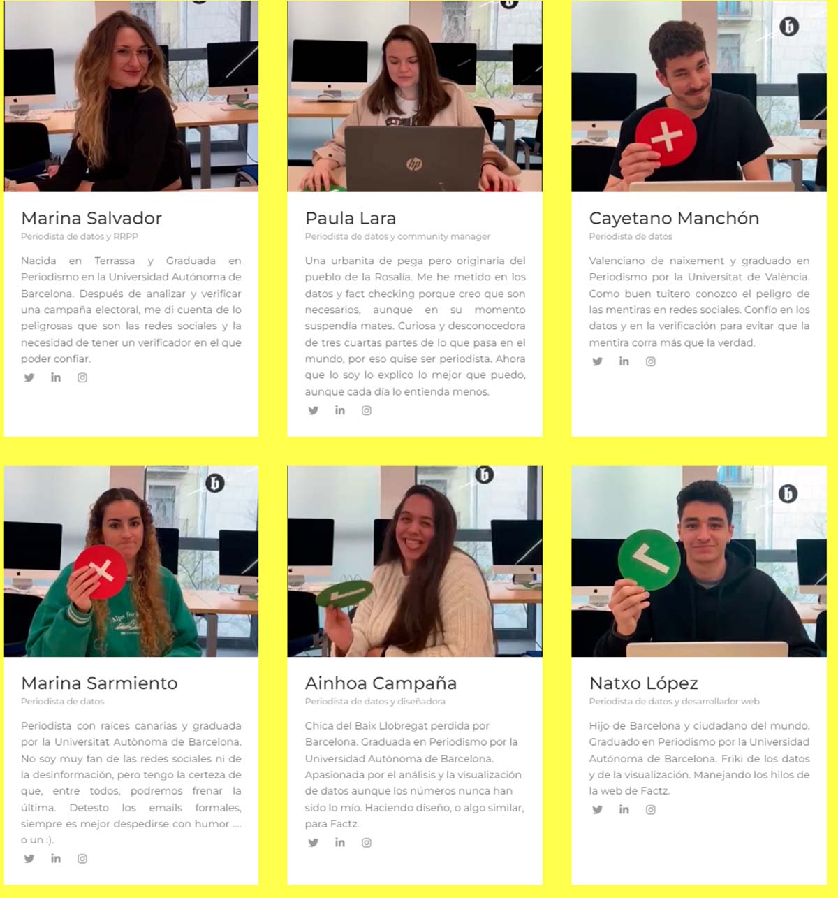El equipo de FactZ está integrado por los periodistas Marina Salvador, Paula Lara, Cayetano Monchón, Marina Sarmiento, Ainhoa Campaña y Natxo López.