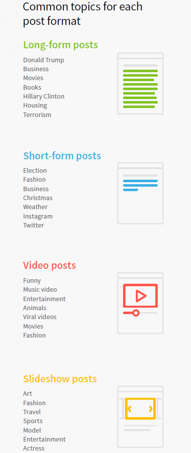 Según el estudio de Parse.ly, «hemos examinado varios formatos de publicación para ver si el éxito general está conectado de alguna manera con su diseño, además del contenido».