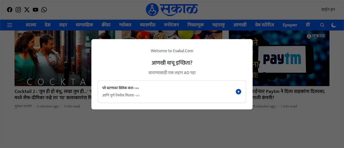 Offerwall se ha integrado en esakal.com -explican desde el medio- sin afectar tampoco a los indicadores vitales del sitio ni a la experiencia del usuario, manteniendo el compromiso de la audiencia a través de anuncios basados en intereses.