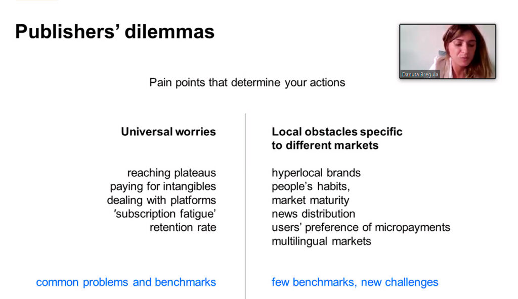 La directora de Estrategia de Suscripciones de Gazeta Wyborcza, Danuta Bregula, apunta que supieron pronto que las suscripciones eran cada vez más importantes y pusieron en marcha estrategias al efecto, que han hecho que cuenten ya con 240.000 suscriptores, pero al inicio se encontraron con algunos frenos particulares por el entorno propio, además de aquellos que afectan a todos los medios. Entre ellos, la renuencia de los lectores polacos a mantener suscripciones recurrentes.