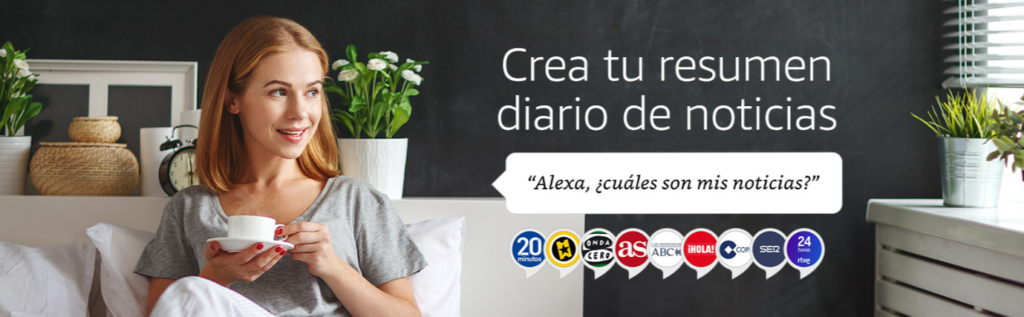 Ya son varios los grupos y medios de comunicación españoles que tienen preparadas sus «skills» para el Amazon Echo (Vocento, El País, El Mundo, Cope, Ser, Onda Cero, 24 horas de RTVE…) Por ejemplo, desde el laboratorio de Vocento han impulsado la creación de ‘Las noticias de ABC’, el resumen diario de noticias de ABC, que se ofrece en formato audio y vídeo y que puede escucharse en los altavoces inteligentes de Amazon y de Google, así como en Ivoox y Apple Podcast.