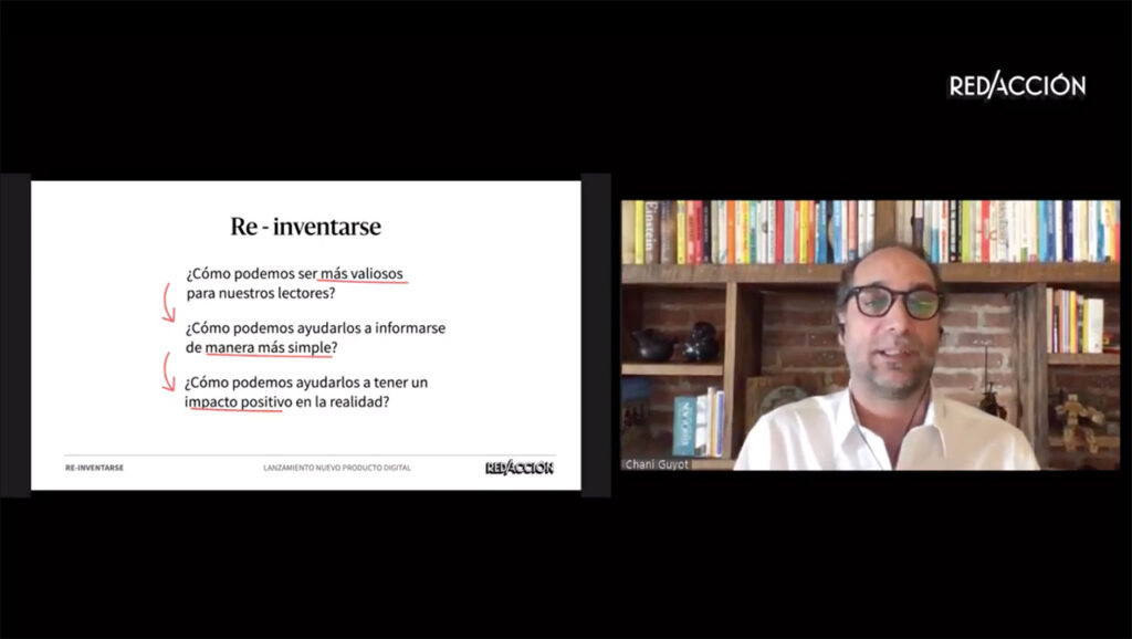 Esta transformación de la home apuesta a que en tres minutos sus lectores “puedan sentir que están al tanto con las noticias (la agenda mediática), puedan asomarse a los temas que les interesan pero no siempre están tratados en los medios (la agenda propia de RED/ACCIÓN) y para que, al mismo tiempo, ese recorrido sea una ‘experiencia enriquecida, más interesante, más interactiva, y hasta más divertida’”, tal como define su CEO y director, Chani Guyot.