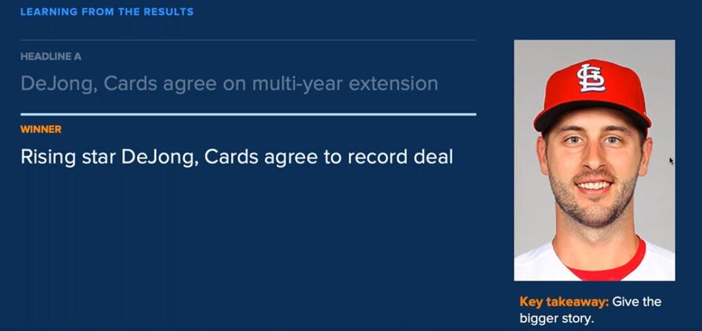 Las pruebas realizadas por MLB.com también han dado respuesta, con respecto al público al que se dirigían, si los juegos de palabras en los titulares funcionan como inicialmente pensaban. «Descubrimos que no servían a nuestros fans», dijo Fontana. «Esto nos ayudó a ser más directos y apostar por titulares que digan algo más sobre qué van a encontrarse».