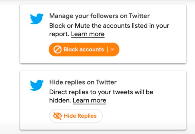 Dentro de TRFilter también existe la opción de crear registros de acoso y descargar un informe, para compartir con terceros. Los usuarios pueden elegir que el informe incluya todo el contenido abusivo y las cuentas que la herramienta ha identificado como dañinas, o personalizar su selección.