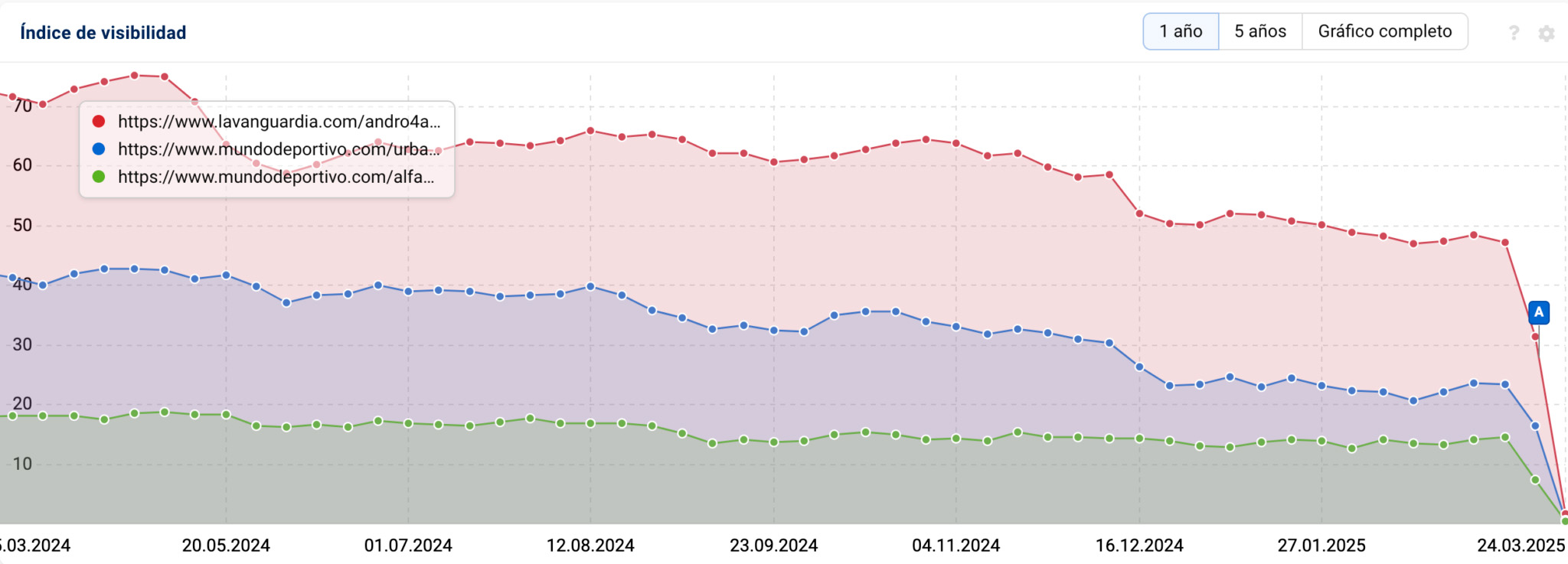 El informe detalla ampliamente la penalización manual aplicada por Google por «Abuso de Reputación» que inicialmente afectó a medios en inglés en noviembre de 2024 y posteriormente en enero y marzo de 2025 a medios españoles como El País, El Mundo, Público y 20Minutos, entre otros. Según el análisis de Marimón, los grandes medios penalizados eran conscientes del riesgo, pero decisiones internas priorizaron otros factores sobre las recomendaciones SEO, reflejando una subestimación del impacto del algoritmo.