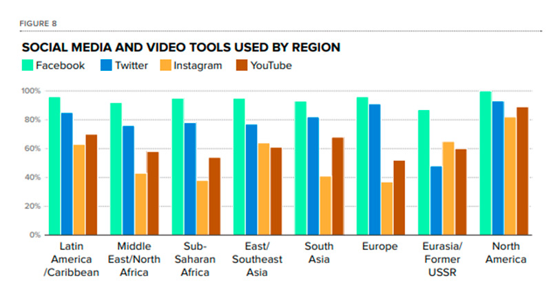 Más combinación de formatos para distribuir contenido. Las redacciones trabajan en todo el mundo con una mayor combinación de formatos para distribuir su contenido. Dos tercios de los medios de comunicación difunden contenido en al menos cuatro formatos, un aumento significativo del 40% sobre 2017. Los periodistas que cubren noticias hiperlocales son los que utilizan la más amplia variedad de herramientas y plataformas para interactuar con el público.